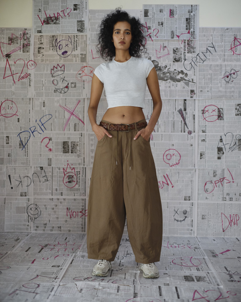 Brown Wide-Leg Balloon Pants
