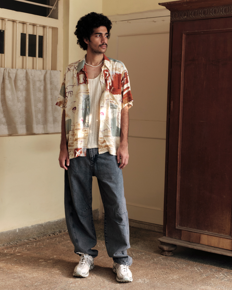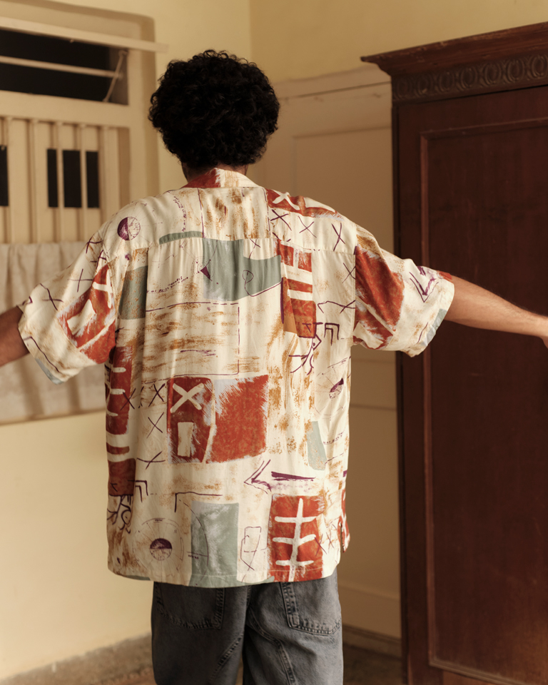 Directional Art-inspired print meets breezy Cuban collar cool.