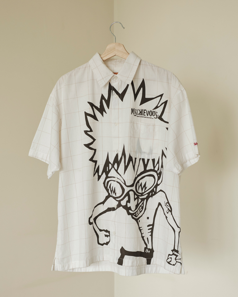 The Mischievous Shirt delivers playful energy with purpose. Thrifted and one-of-a-kind, it features a bold placement print and soft, breathable cotton that feels as good as it looks. With its standout charm and easy styling, this shirt instantly elevates any outfit. No clones, no mass production — just one of one.