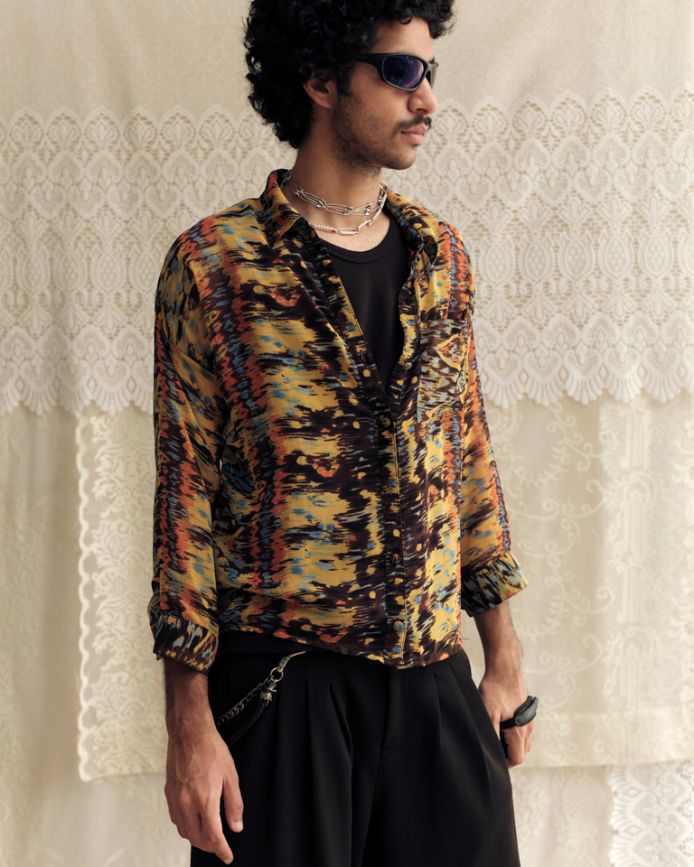 A lightweight acid print shirt in rich, warm tones. Easy to wear, easy to style.