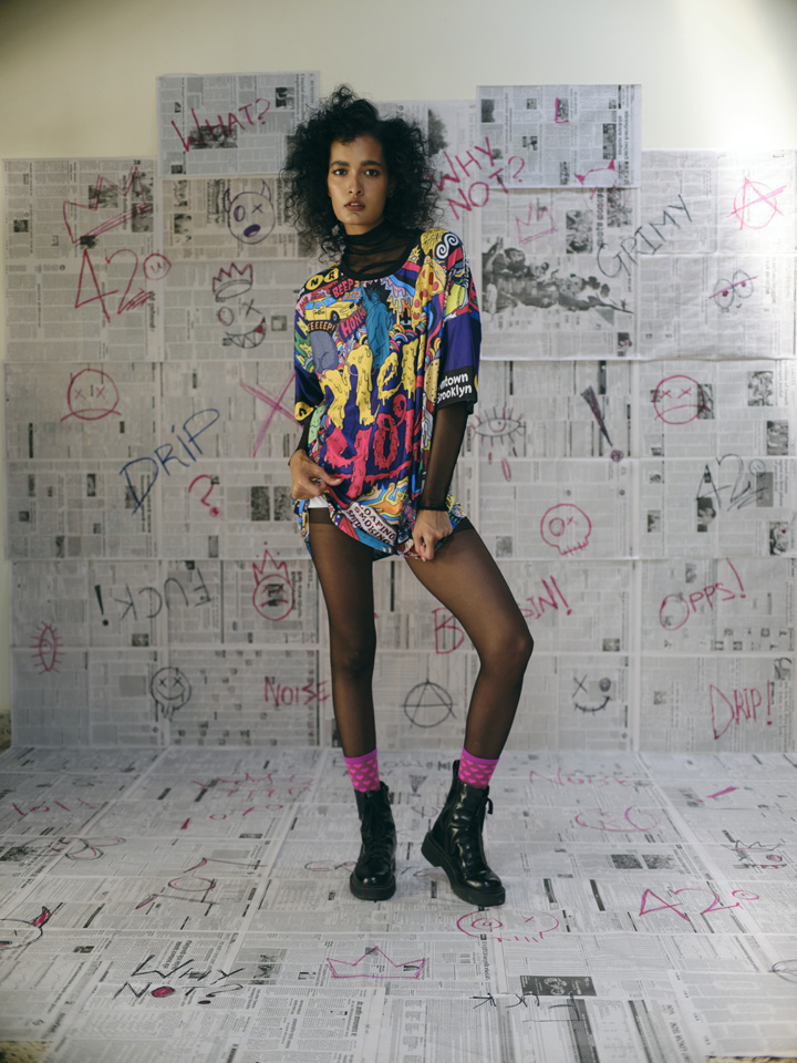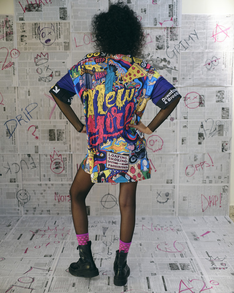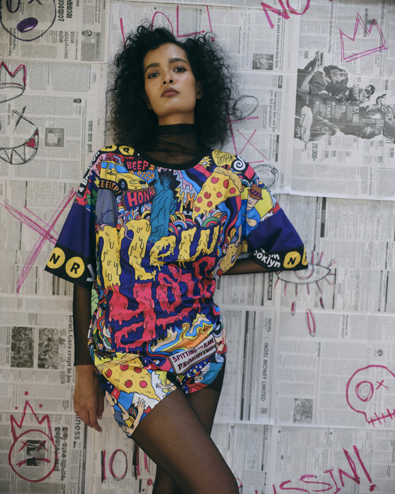 A vibrant oversized tee featuring a bold New York pop-art illustration, packed with comic-style graphics, iconic city elements, and a colourful streetwear edge. Lightweight and unisex.